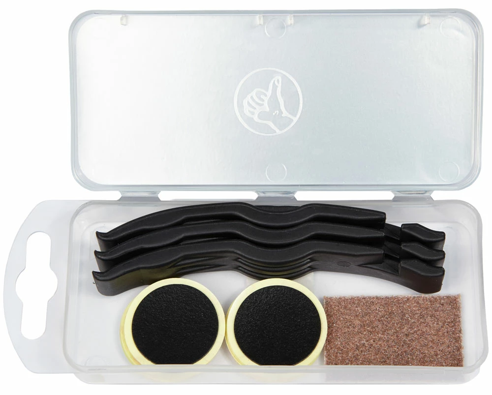 Das GP-1 Flickzeug-Kit von Katana ist schnell zur Hand und umfasst alles Nötige, um einen defekten Schlauch zu reparieren. Mit zehn selbstklebenden Flicken und Schmirgelpapier lassen sich Reparaturen schnell und sauber durchführen.