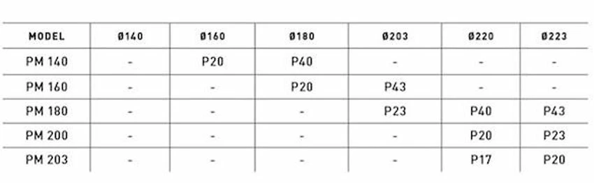 | PM 140 | – | P20 | P40 | – | – | – |